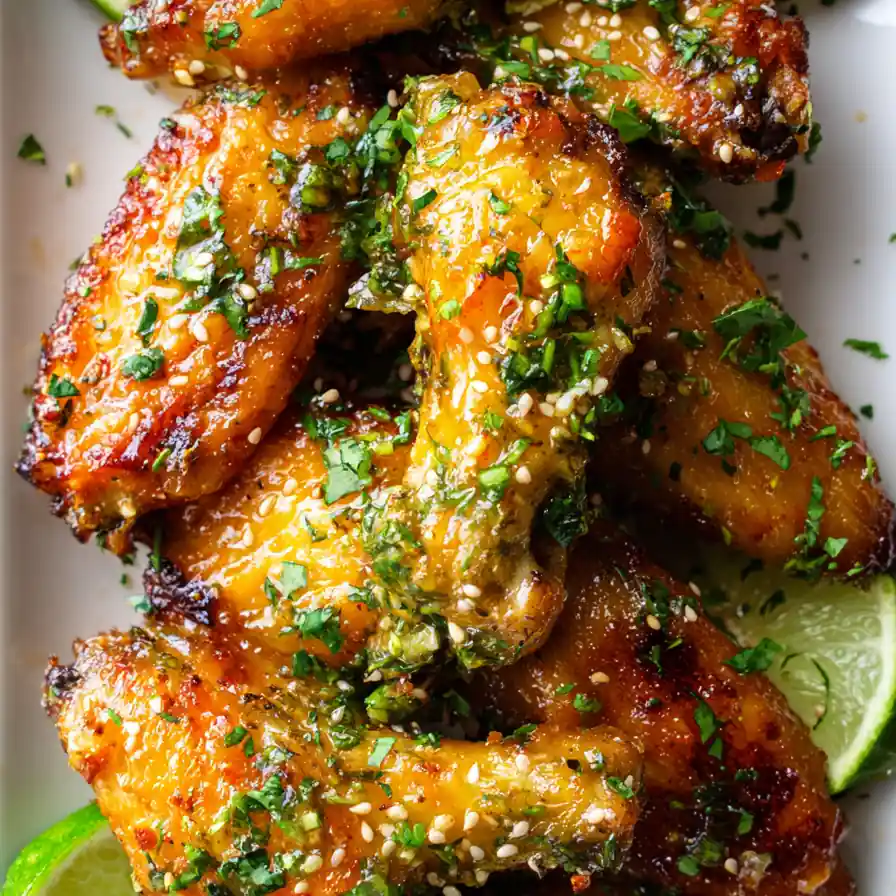 - Rest and Garnish โ Final Touches: Remove the wings, transfer to a serving platter, and let rest for 5 minutes. This allows the juices to redistribute, resulting in more tender and flavorful wings. Drizzle with any remaining glaze, scatter chopped cilantro and toasted sesame seeds, and arrange lime wedges for a beautiful presentation.