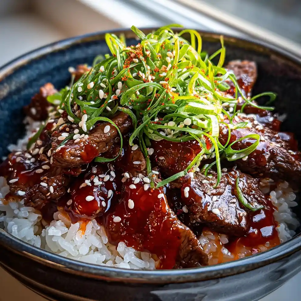 A quick and easy gochujang beef bowl featuring thinly sliced beef coated in a savory-sweet glaze, perfect for a satisfying weeknight meal in under 30 minutes.
