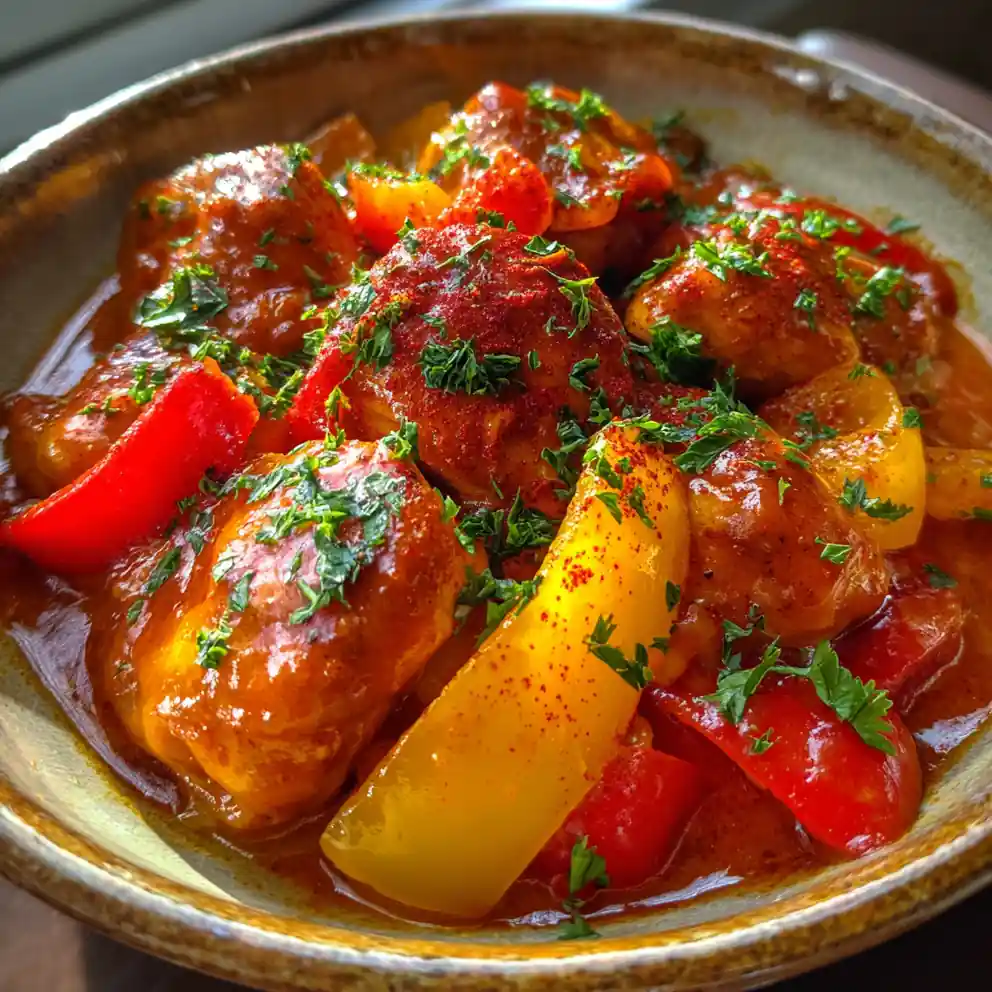 This recipe combines tender chicken thighs and sweet bell peppers in a rich, velvety tomato glaze, offering big flavor and comfort in a meal that takes less than 30 minutes to make on a weeknight.