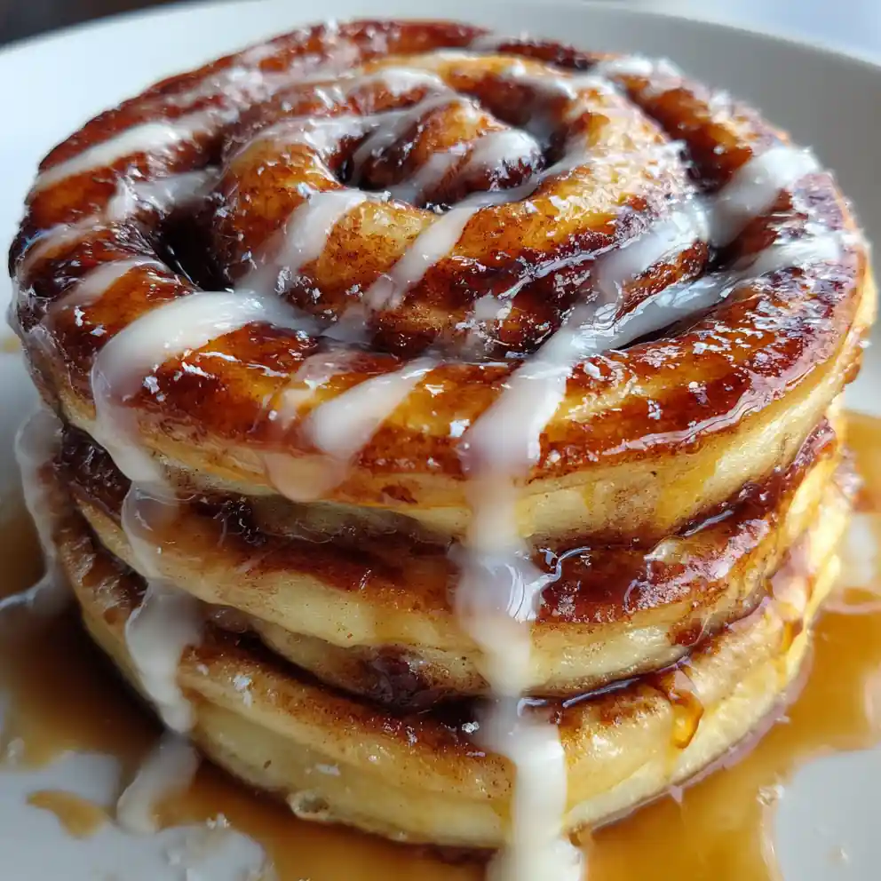 - Prepare Icing: In a small bowl, whisk 1 cup powdered sugar with 2 Tbsp milk and 0.5 tsp vanilla extract until smooth and drizzly. Add more milk, 0.5 tsp at a time, if a thinner consistency is desired. Drizzle generously over warm Iced Spiral Cinnamon Roll Pancakes.