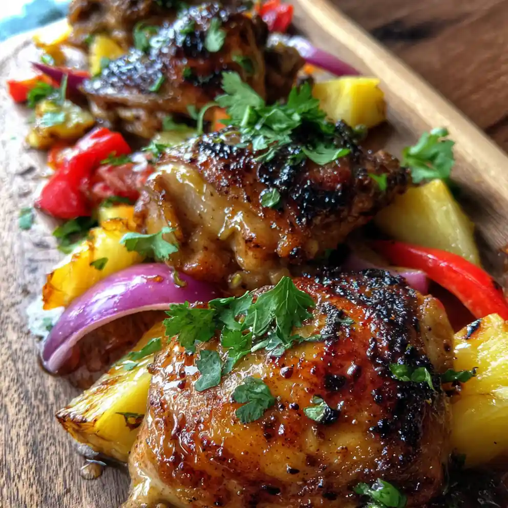 Craving a taste of the tropics? This Coconut Lime Glazed Hawaiian Chicken Sheet Pan Dinner is your ticket to paradise! Itโs a vibrant, flavorful, and incredibly easy meal thatโs perfect for busy weeknights. Juicy, bone-in chicken thighs are marinated in a sweet and savory Hawaiian-inspired sauce, then roasted to perfection alongside colorful pineapple and bell peppers. The best part? Everything cooks on one sheet pan, meaning minimal cleanup! Get ready to experience a burst of sunshine with every bite. This recipe is a guaranteed crowd-pleaser, bringing the warmth of the islands straight to your table.