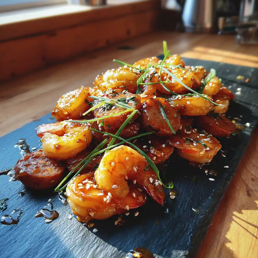 Step-by-Step Instructions for Honey Garlic Shrimp with SesameโGlazed Chicken Sausage
