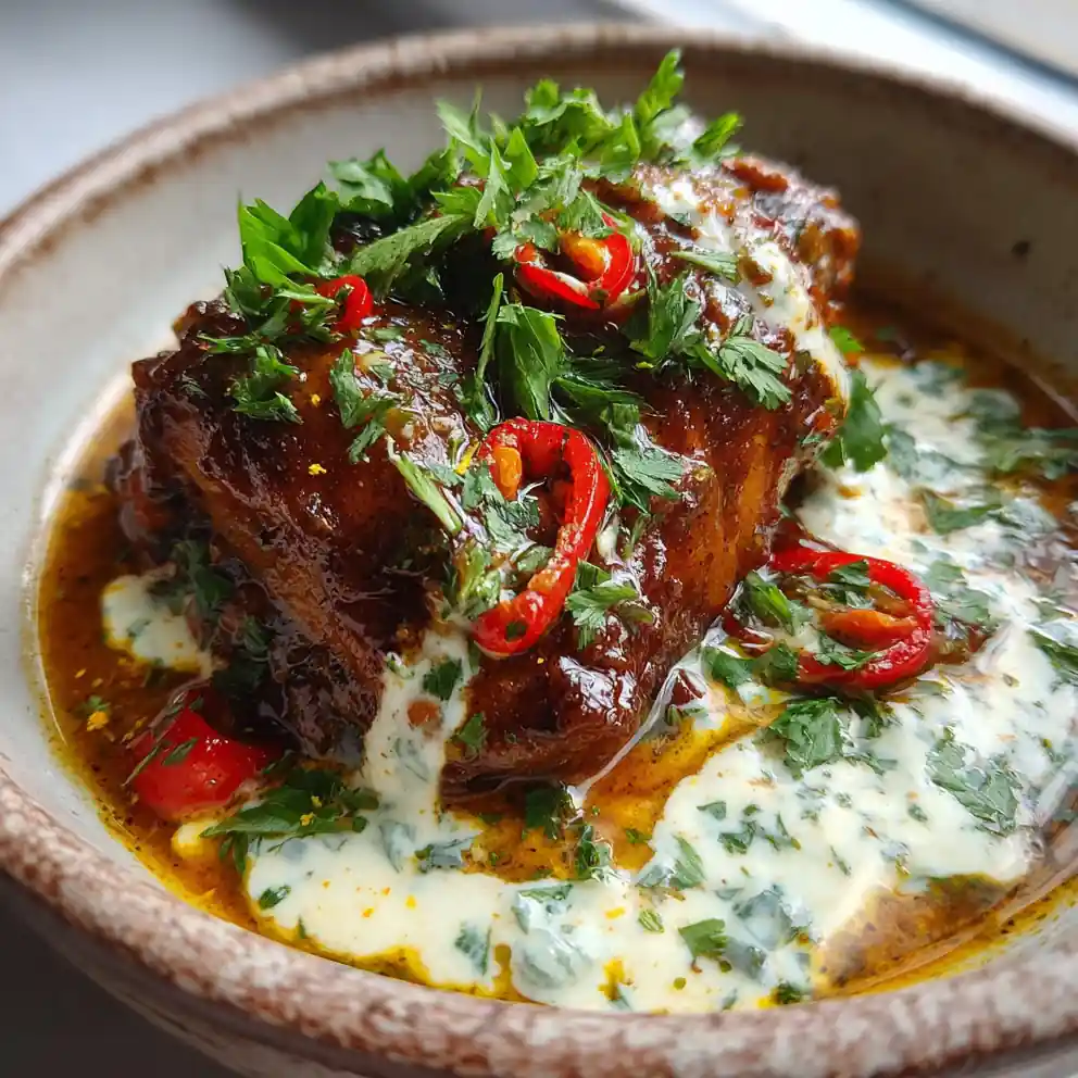 - Finish and Serve: Taste the stew and adjust seasoning as needed. Carefully remove the whole scotch bonnet pepper before serving if desired. Ladle the brown stew chicken onto plates and drizzle generously with the warm Creamy Coconut-Lime Infusion just before serving; garnish with fresh cilantro.