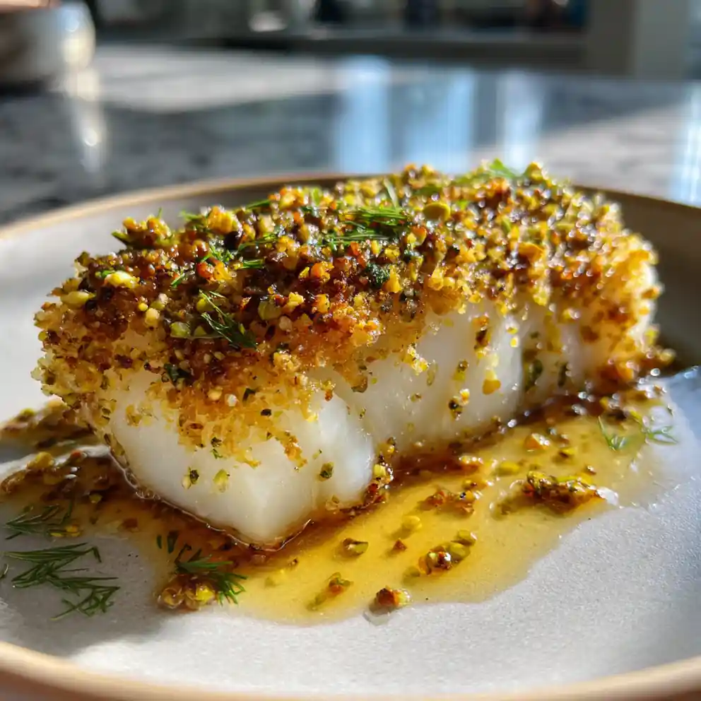 Mediterranean Baked Cod With Pistachio Zaatar Crust And Lemon Olive Drizzle 1767849547.538762
