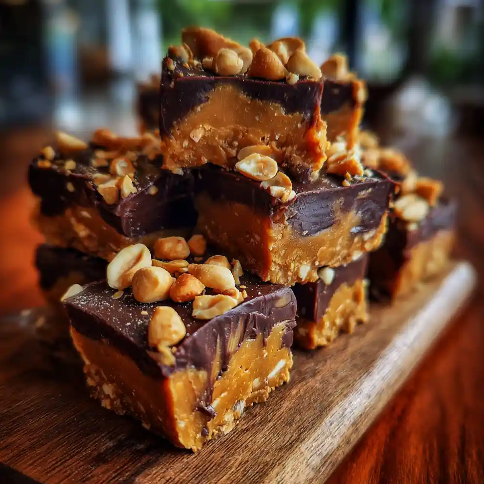This easy, family-friendly peanut butter fudge recipe features a creamy, rich peanut butter base, topped with a luscious cocoa layer, and finished with a satisfying, salty peanut crunch, perfect for quick preparation.