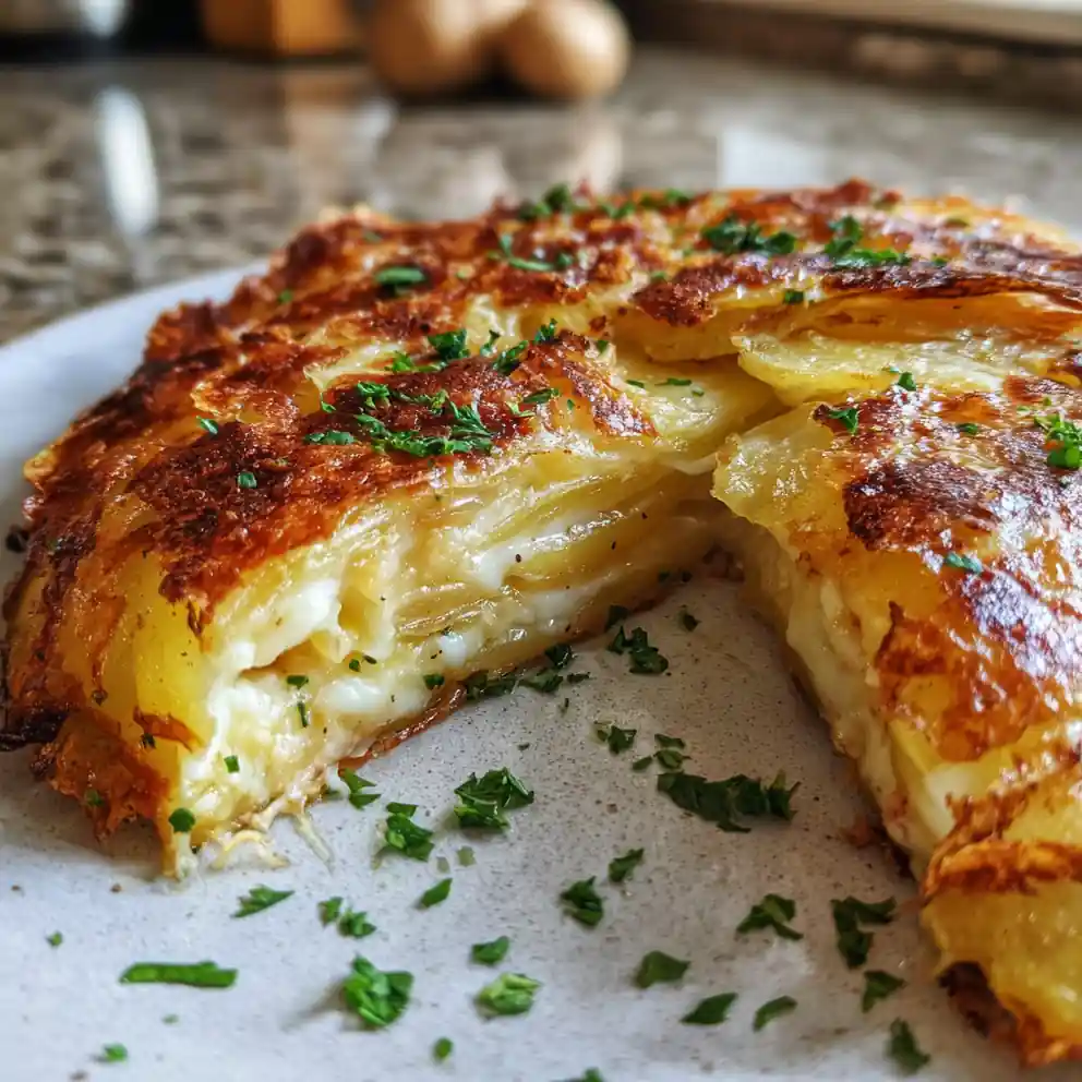 Caramelize some thinly sliced onions or leeks in butter before adding the potatoes. Layer the onions or leeks between the cheese layers for extra flavor and sweetness. This addition turns the potato galette into a more substantial vegetarian main course option.