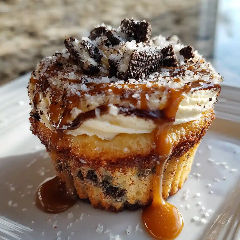 - Frost and Garnish: Pipe or spread the cookie crumble buttercream onto each cooled cupcake. Drizzle a thin stream of the remaining salted caramel over the frosting. Sprinkle with extra crushed cookies and a light pinch of flaky sea salt for a beautiful contrast.