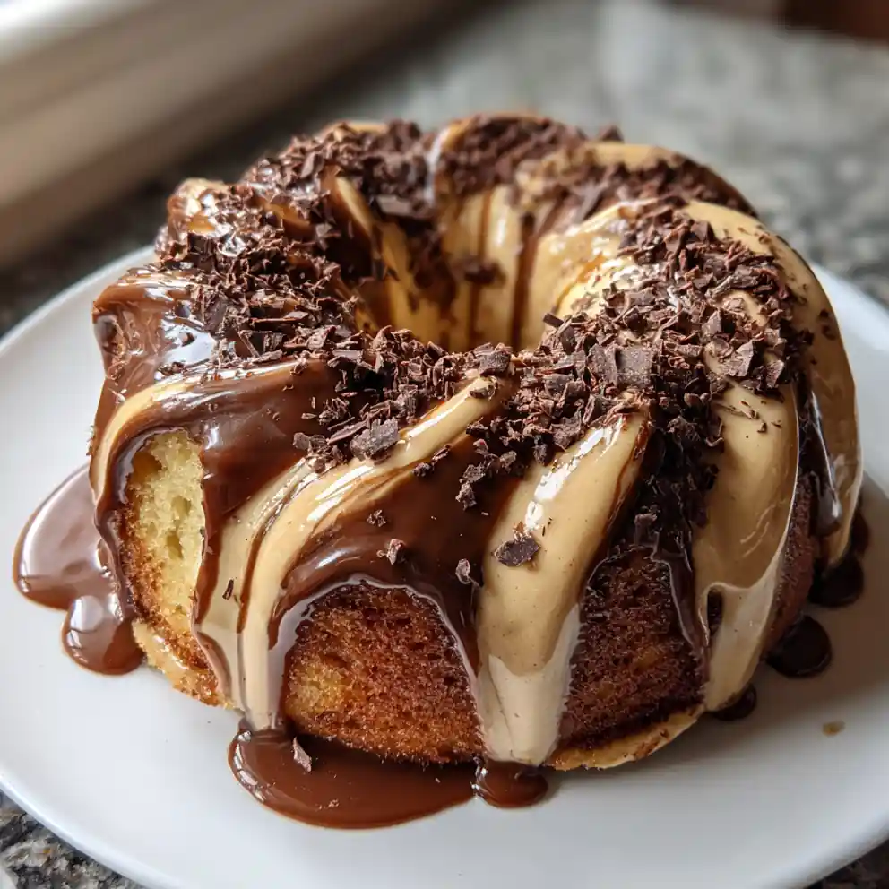 - Glaze & Garnish: Make the espresso glaze by whisking together the sifted powdered sugar, cooled espresso, and melted butter until the mixture is smooth and glossy. Drizzle the glaze over the top of the cake, allowing it to pool and drip down the sides for a beautiful, shiny finish. Scatter the dark chocolate shavings over the glazed surface and lightly dust the entire cake with cocoa powder for contrast.